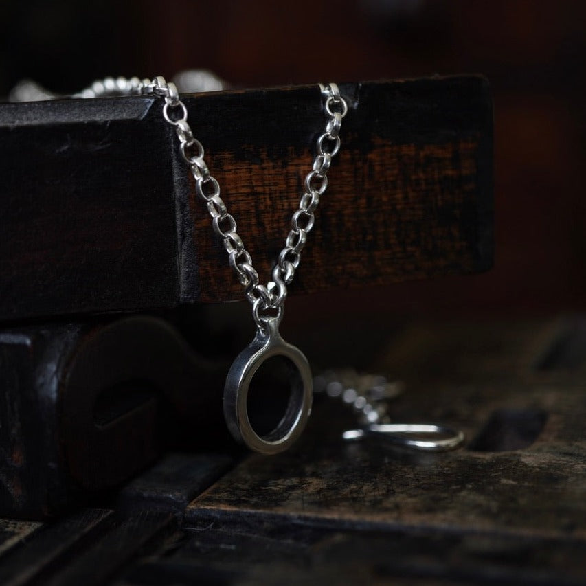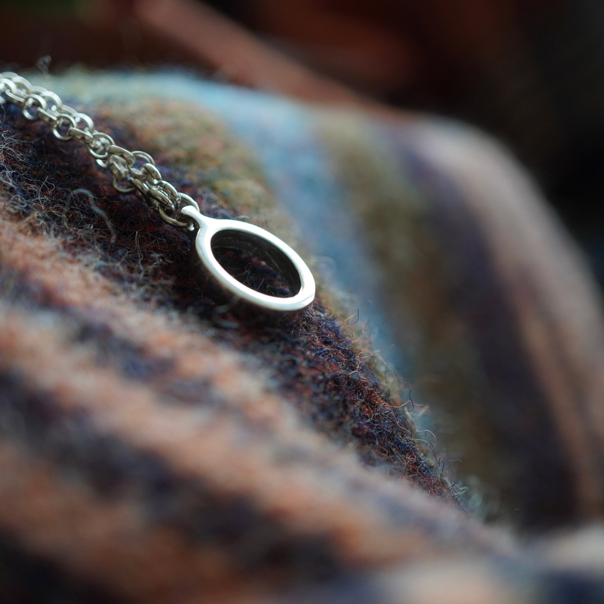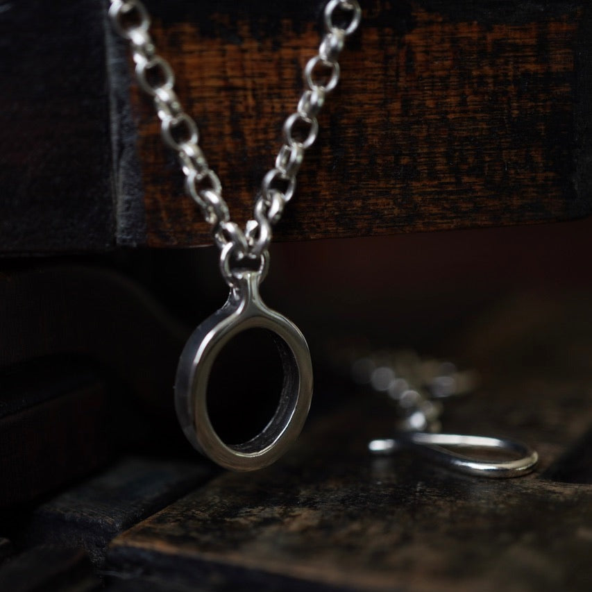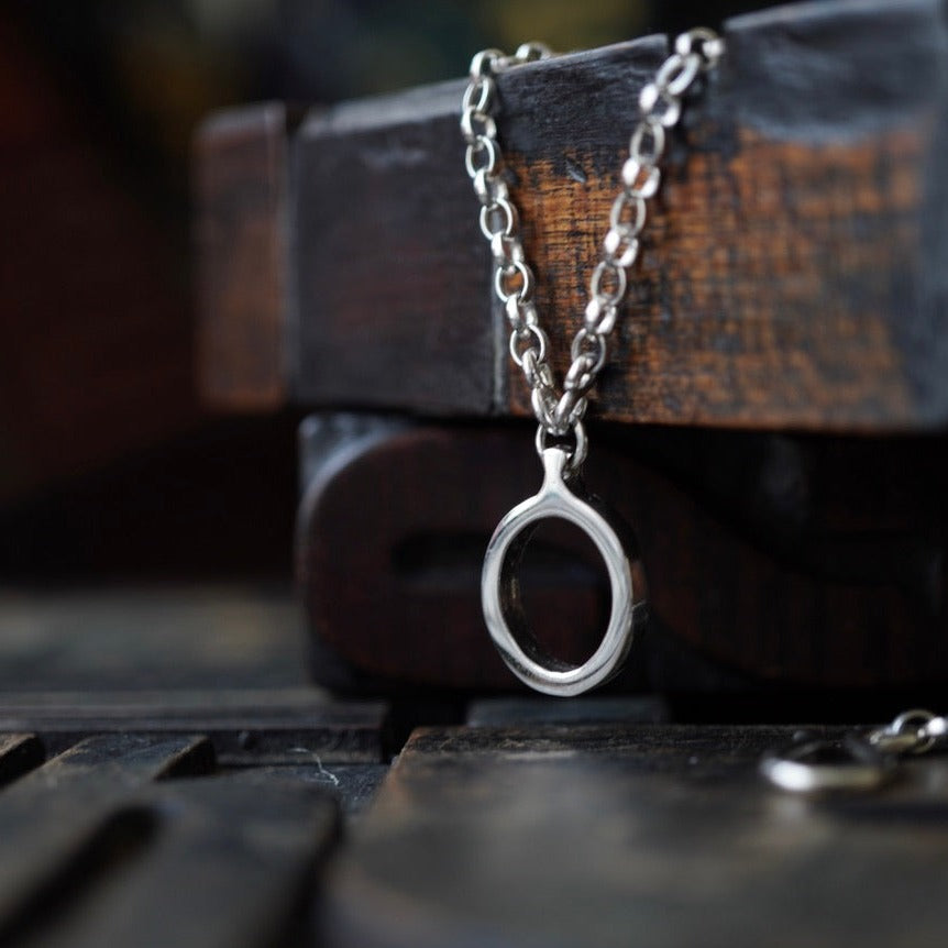 The oval pendant comes on a 16" belcher chain with a handmade "S" style clasp.