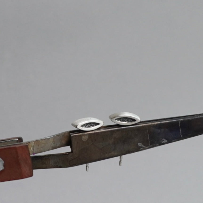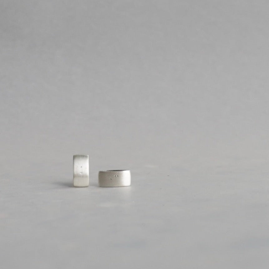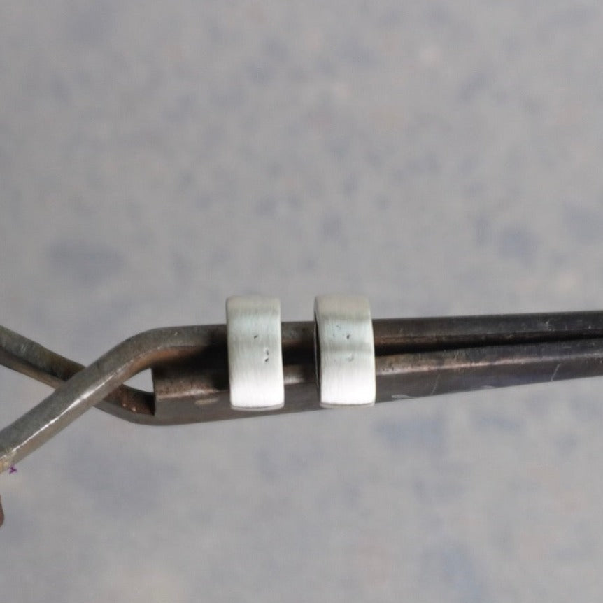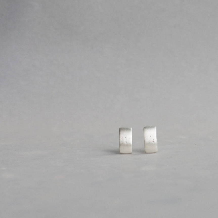 The simplest form in the Reflection range is the flat arch. Two arched rectangles are placed back to back with each other to form a symmetrical shape, and the space between the arches is filled in, so as to form a solid little nugget, unlike the matching pendant where the chain sits between the two arches.
